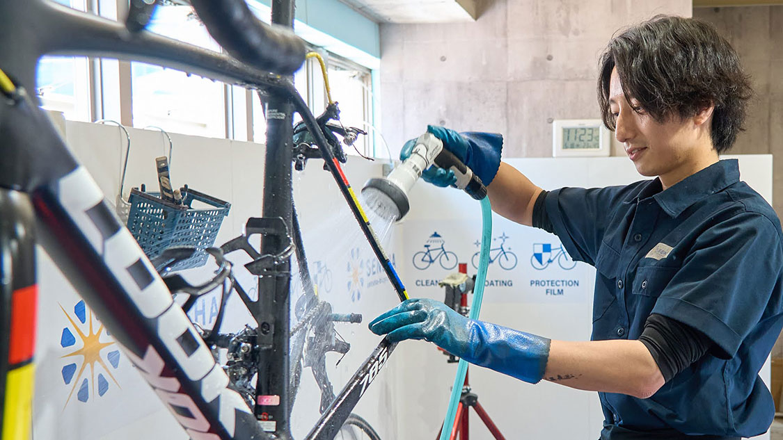 プロの洗車は、「汚れを落とす」だけでなく「自転車を壊さない(水を入くべきでない場所に入れない、塗装を守る)」ことを最優先に行っています。