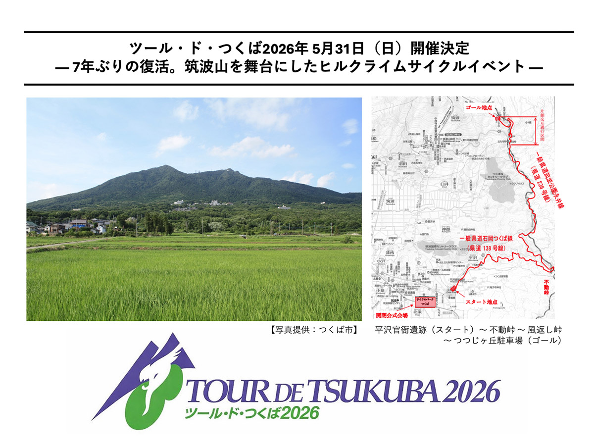 関東屈指のヒルクライムスポットとして知られる筑波山。その大自然を舞台にした「ツール・ド・つくば」は、初夏の風物詩として多くのローディーに愛されてきました。